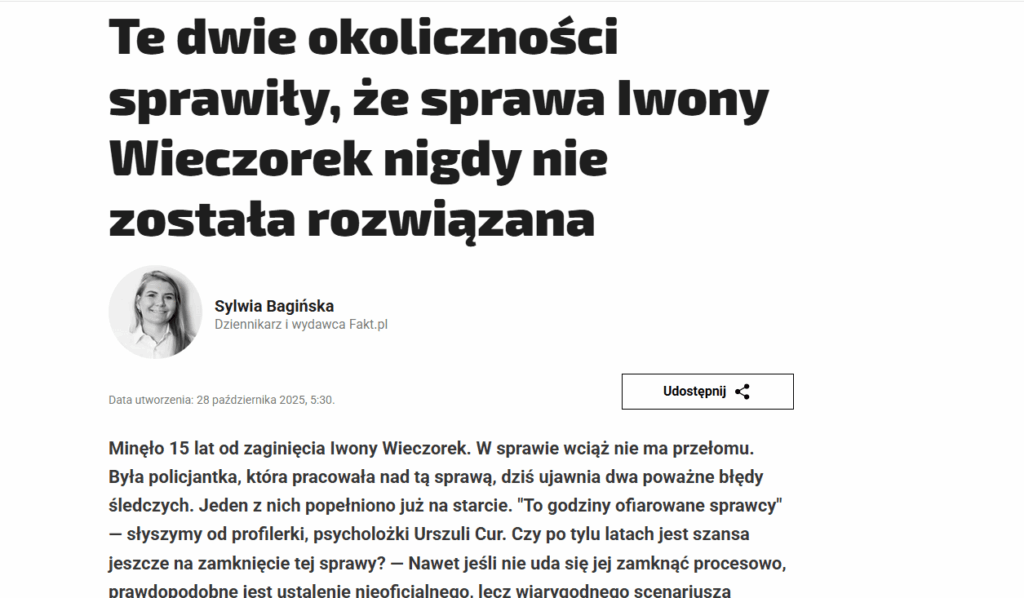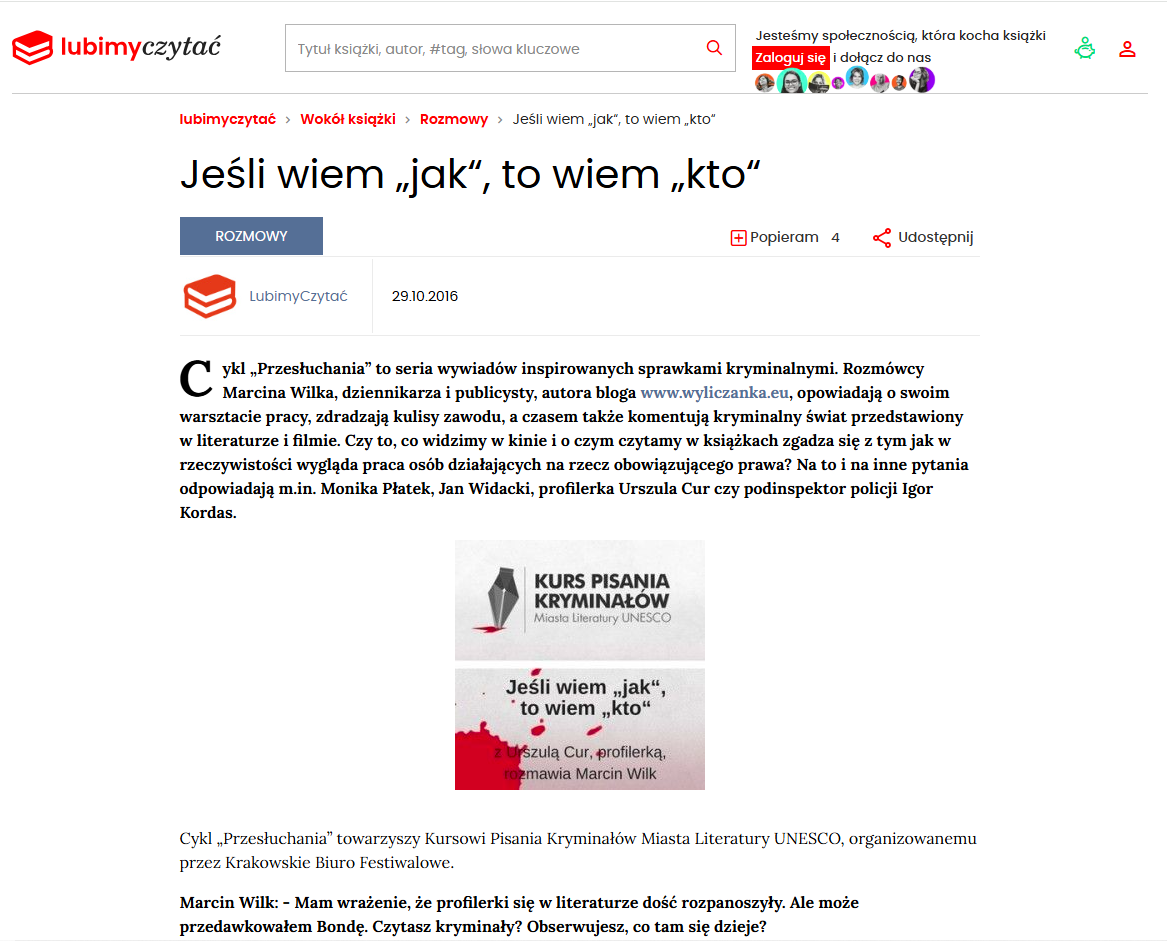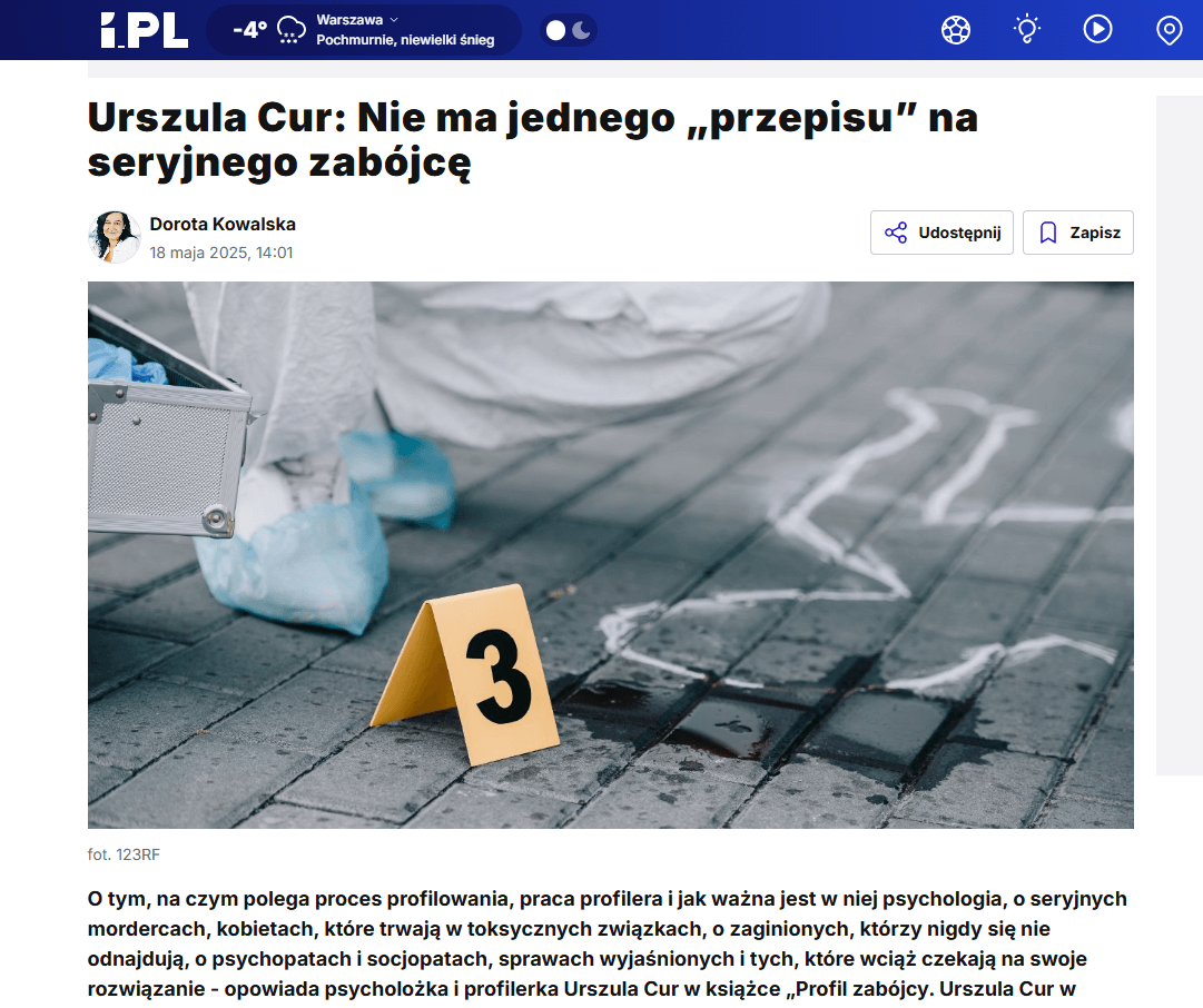 Urszula Cur wyjaśnia, jak powstaje profil nieznanego sprawcy, dlaczego ludzie popełniają błędy na miejscach zdarzeń, co mówią drobne gesty, a nawet… milczenie.